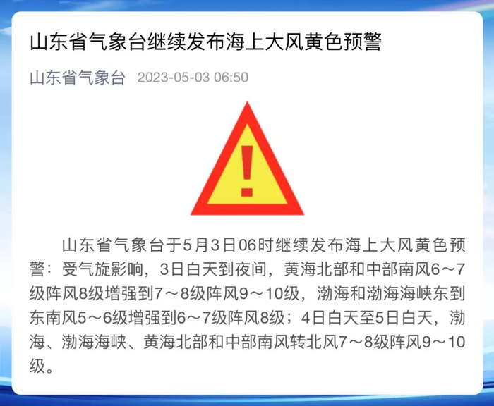 海上大风黄色预警