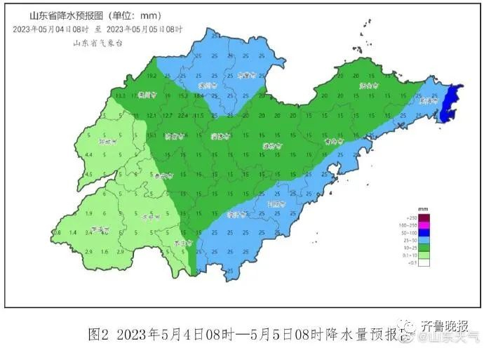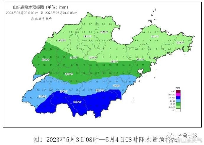预计3日白天至4日夜间,全省累计平均降水量30~50毫米。其中,菏泽、济宁、枣庄、临沂、济南、泰安和淄博40~60毫米局部70~90毫米,聊城、东营、潍坊、青岛和日照30~50毫米局部60~80毫米,德州、滨州、烟台和威海20~40毫米局部50~70毫米。