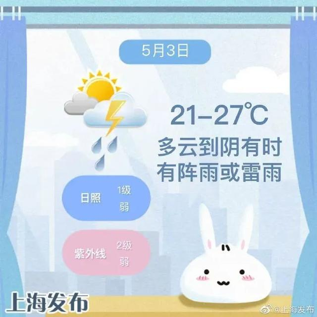 特别提醒!上海今天多云到阴有时有阵雨或雷雨,累积雨量中等,吹的是南到东南风5级阵风6-7级,最高气温27℃,最低气温21℃。未来2-3天申城多阵性降水天气,并可能伴有雷电活动,周日开始,天气趋于稳定,转多云为主。返程高峰期,又有大风、雷雨侵扰,大家出行注意交通安全,减速慢行,及时关注最新天气预报哦!