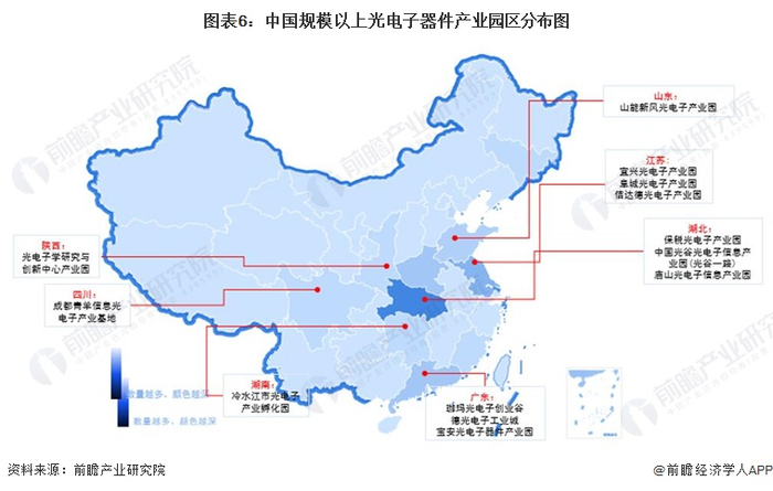 目前,我国规模以上的光电子器件产业园区共有29个,主要分布在湖北、江苏、广东等地,其中湖北最多,产业园区数量达到10个。