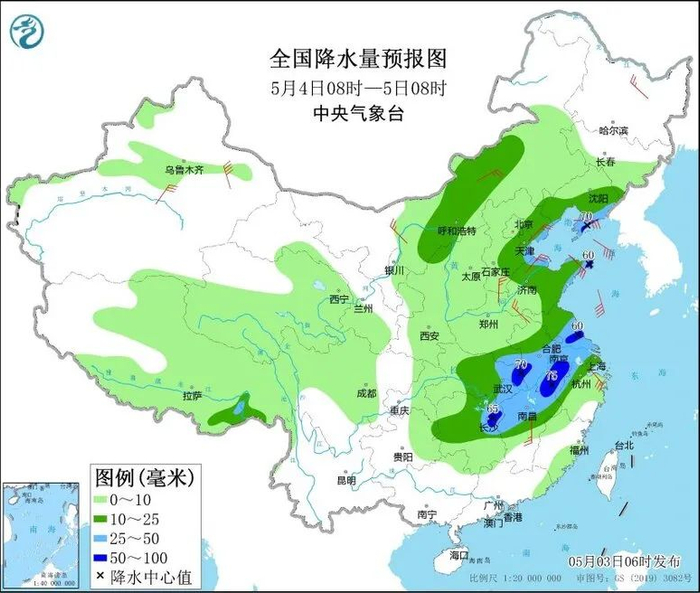 预计未来三天,我国中东部地区雨水起势,湖北、安徽、河南、山东、湖南、江西等地将有暴雨,局地有大暴雨,强降雨时段集中在3日夜间至4日。