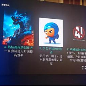“AIGC是一个革命,使得创作者群体产生了分裂,现在有三类:第一类是随时去学习和拥抱,热情拥抱的创作者。第二类是学艺不精的创作者,用了达不到预期效果,对它进行否定,认为AI没有什么效果。第三类是呐喊抵制的创作者,比如说某游戏项目的插图疑似使用AI后,微博上全面声讨AI画师,最后制作方出来也说抵制AI绘画。”倪镔说。