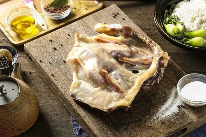 南安板鸭皮色奶白,包裹着鸭肉