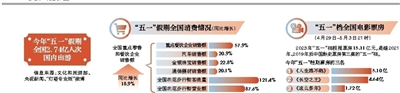 “五一”假期迎来观影热潮,《人生路不熟》《长空之王》等影片类型丰富、题材多样,灯塔数据显示,截至5月3日12时北京市票房累计超5700万元。银联商务数据显示,北京市文化娱乐类消费金额同比增长61.3%。