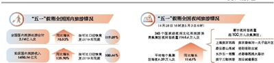 5月3日,北京市商务局公布的数据显示,“五一”假日期间,市商务局重点监测的百货、超市、专业专卖店、餐饮和电商等企业实现销售额46.6亿元,同比增长21%。全市60个重点商圈客流量3498.9万人次,同比增长76.5%。另据北京市文旅局介绍,根据全市景区、住宿、交通等方面假日重点监测系统数据综合统计,今年“五一”假期,北京市接待游客总量912.8万人次,同比增长198.2%,按可比口径比2019年增长6.6%;旅游总收入134.6亿元,同比增长752.3%,按可比口径比2019年增长13.9%。