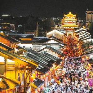 5月1日晚,凉山州西昌市建昌古城夜色如画,游人如织。