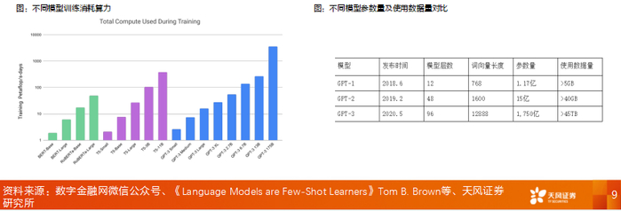 根据OpenAI在2020年发表的论文,训练阶段算力需求与模型参数数量、训练数据集规模等有关,且为两者乘积的6倍:训练阶段算力需求=6×模型参数数量×训练集规模。
