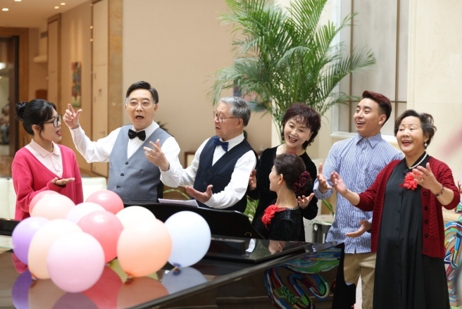 已是耄耋之年的杨玉莅是泰康之家·燕园的居民,同时也是燕园钢琴班的志愿老师。在她的课堂上,平均年龄82岁的居民学员们从零开始,追求少年时的音乐梦。从认识五线谱,到日复一日的琢磨、练习,再到一首首流畅的钢琴曲奏响在燕园的一个又一个舞台上,杨玉莅与燕园钢琴班用音符书写他们不曾逝去的青春与梦想。在她的琴声里,泰康之家五四特别献礼拉开序幕——大江南北的14所泰康之家养老社区共同唱响老歌新编版《年轻的朋友来相会》。