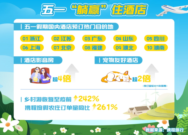 五一跨省酒店预订占比超7成 乡村住宿蹿红携程度假农庄同比增长261%