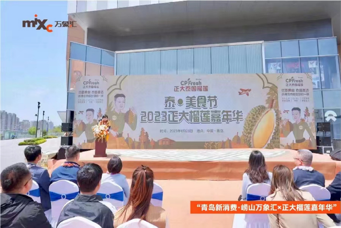 崂山区组织开展了泰·美食节暨正大榴莲美食嘉年华,丰富市民生活业态,提振消费信心。在崂山万象汇“正大榴莲嘉年华”,体验纯正泰式风情。