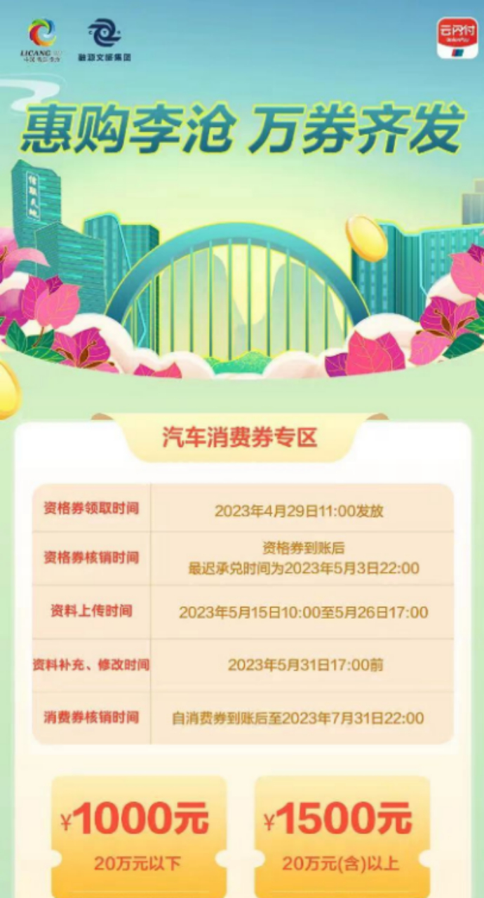 4月29日至5月3日期间,李沧区举行“惠购李沧 万券齐发”李沧区惠民消费券活动,持续推动消费转型升级。届时,消费者可通过银联云闪付APP首页腰部“区消费券”模块,点击进入“李沧区”板块,打开消费券发放界面领取。4月29日当天,将分五个时段一次性发放商超、汽车、家电、餐饮消费券各面值消费券约6570张,共计约95万元;发放景区消费券共3350张,共计10万元。