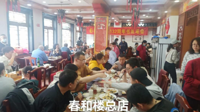 “五一”期间,中山路中华老字号春和楼总店周密计划,提前准备,突出鲁菜特色,弘扬中华优秀饮食文化,吸引了大批市民和游客前来打卡品尝金牌香酥鸡、油爆活海螺、葱烧海参、九转大肠、四喜丸子、爆炒腰花、松鼠活鲈鱼、中华名吃大虾仁蒸饺等名菜名吃,门庭若市,天天爆满,营业收入比同期增长了329%,创下了近年来“五一”假期经营最好成绩。