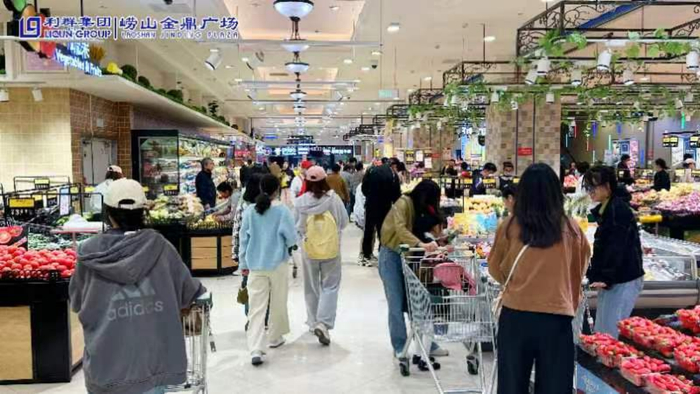 利群崂山金鼎广场,五一放价春日趴,大牌折扣、满额返、心跳抽奖、餐饮排队王油花盛大开业、亲子、趣玩、新装家电薅羊毛等活动轮番上演,多重假日欢乐为市民开启。服饰类累计消费满1000元返100元无门槛服饰券,单张发票至高能返2张。雅诗兰黛指定套盒、网红便携投影仪、油花寿喜烧自助餐券、电影票等超多吃喝玩乐精彩大礼,嗨购尽兴。五一小长假,利群金鼎超市客流倍增,人气爆棚。销售额同比增长10%以上。