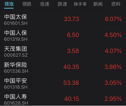 保险股上午也走势活跃,中国平安延续反弹,上涨3.05%。中国太保上涨8.07%。