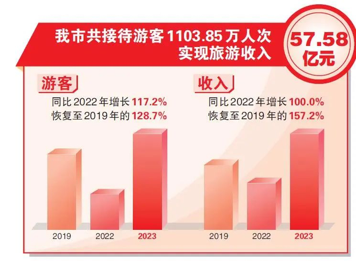 “五一”假期,天津市文旅市场复苏发展步伐明显加快。据统计,“五一”假期,津共接待人数1103.85万人次,实现旅游收入57.58亿元,同比2022年增长117.2%和100.0%,按可比口径恢复至2019年的128.7%和157.2%,延续了全市一季度文旅市场热度。