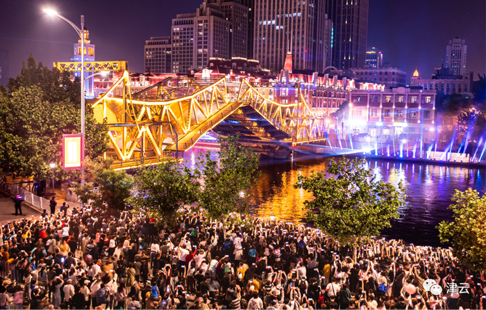 滨海新区于家堡滨河公园举办交响演出,游船码头上演激光投影秀,海河上空开展无人机表演,打造文旅新IP。