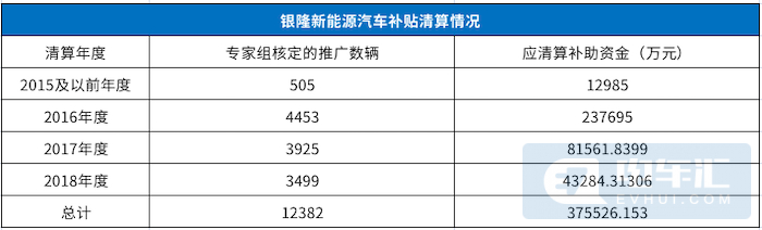 公开数据显示,银隆新能源车的补贴存在一个逐年退坡的现象:2016年最高时单辆车补贴可达50万元/辆,但到2017年、2018年分别为20万/辆、12万/辆。