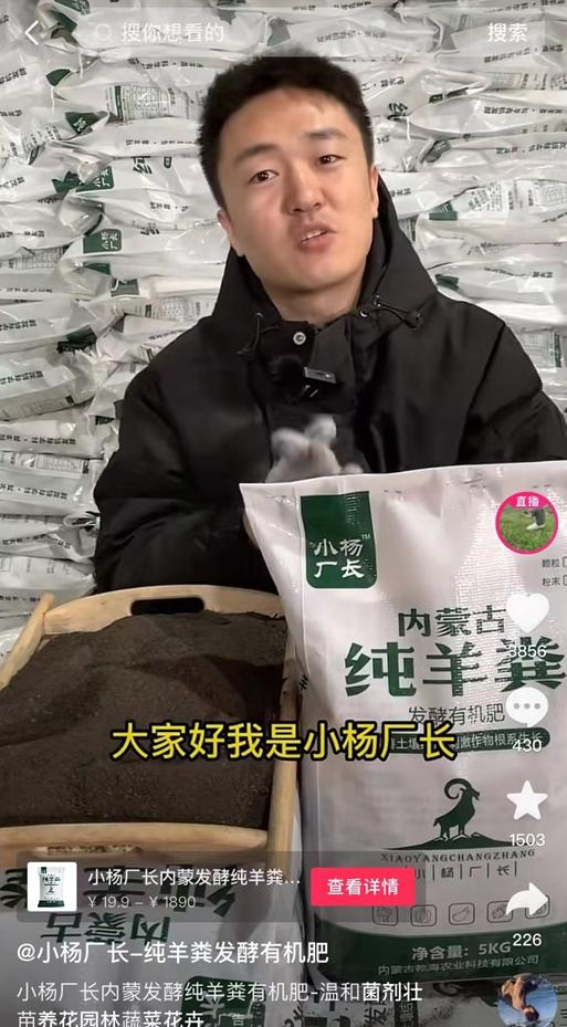与王静不同,杨国民和薛清鹏开启抖音电商之旅虽然相对更晚,但目的也更明确。“我当时发现,网上卖的发酵羊粪肥料品质参差不齐,有的是发酵不到位,有的会掺土,但那些价格都很便宜。我就想,要把这个产品质量做到最好。”杨国民说,自从决定在抖音电商卖产品,就定下了这个标准。