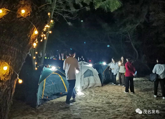 在晏镜社区塘霞海滩树林,“活力晏镜”沙滩露营节活动设置了多个套餐可供游客选择,满足顾客不同的消费需求。从深圳过来游玩的王先生带着自己“全套”露营装备,早早就来到了露营现场“安营扎寨”,“置身于碧海蓝天之中,感受畅快的海风,和自由的海浪,真正体会到乐趣和休闲。”露营爱好者王先生说,这里不仅有凉爽的海风、柔软的沙滩,还有音乐、啤酒和海边的日出与日落。假期期间,游玩的市民零距离体验露营、音乐、游戏等丰富多彩的活动,以及丰富美食、星空美景为游客带来全新的身心和美学体验,如此缤纷的夏日体验,使他们纷纷留住脚步,不想离开。