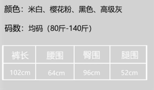 69元,买1送1!!直接到手2条!限量200条!4色可选:米白/樱花粉/黑色/高级灰,送的那条颜色也可以自己挑!!