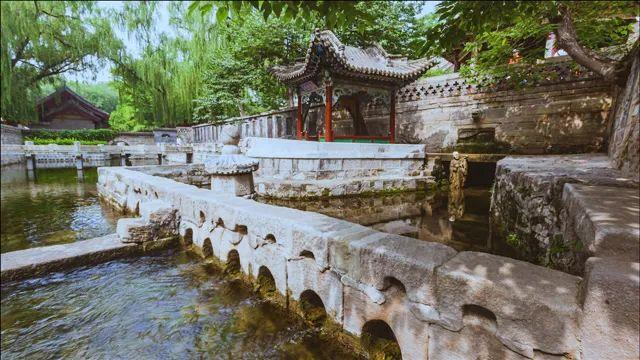 这首诗描写的景致主要是“晋祠之水”。从诗中,我们可以发现晋祠之水有两个特点。一是绿,因为水中铺满莎草,所以“晋祠之水如碧玉”。这景象如今前往晋祠还能看得见。二是水量充沛,能让人“浮舟弄水”,而船上除了李白、元演,还有许多乐工歌伎,免不了还会有其他宾客,合理猜测,船定然不是一叶扁舟,起码是游船不可。李白写诗好夸张,形容晋祠之水为“百尺清潭”。然而他也说过“桃花潭水深千尺”,庐山瀑布“飞流直下三千尺”,说晋祠之水仅仅“百尺”,在李白诗中尚算保守。