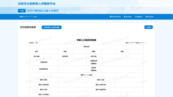 3.入学审核通过的适龄儿童用户才能打印信息采集表。