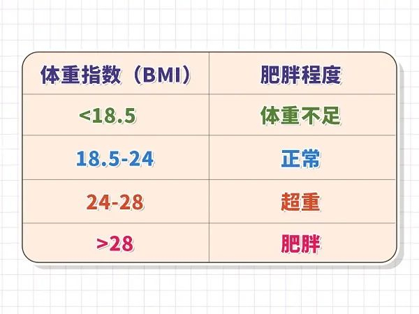 完成BMI计算后,再根据下表的区间范围,判断BMI是否正常: