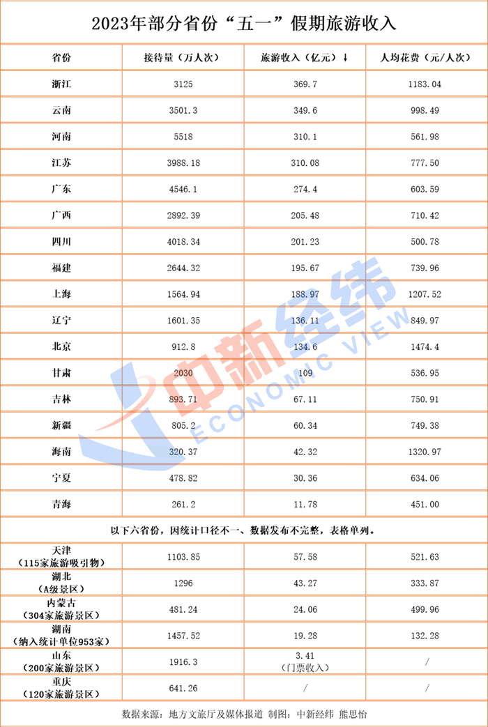 23省份“五一”旅游成绩单:浙江吸金370亿,“北京游”花费高