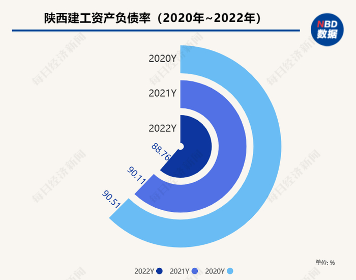 拉长时间线来看,2020年至2022年,陕西建工的资产负债率分别为90.51%、90.11%及88.76%,呈逐年下降趋势。上述数据的逐年下降,极大地说明了陕西建工自身具有极强的内控能力。