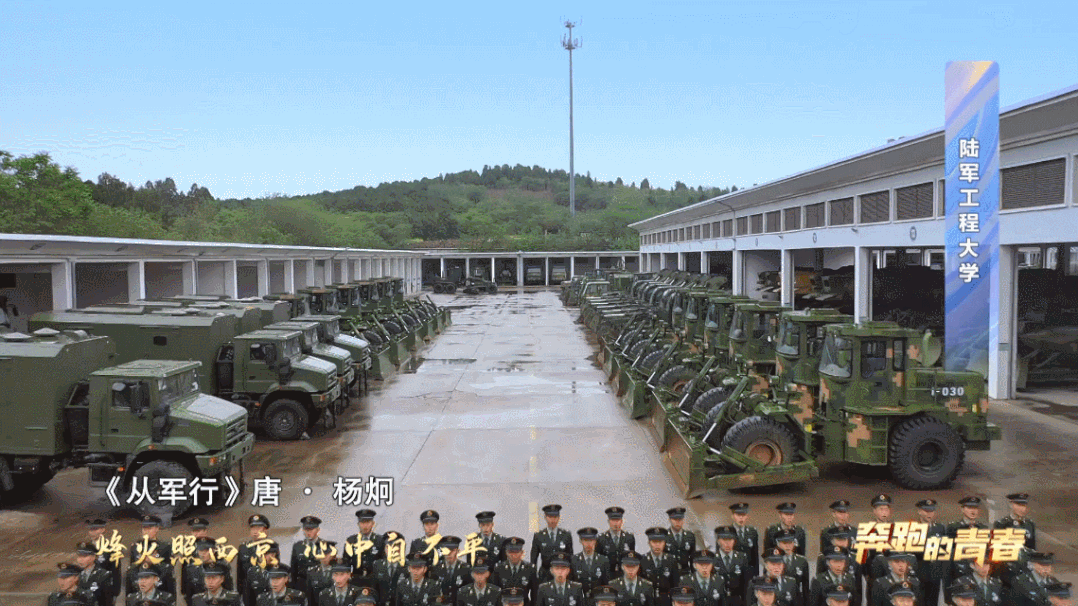站着整齐的列队,齐声朗诵着这首《从军行》