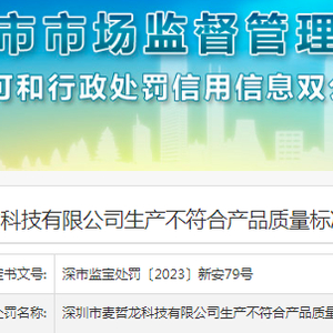 深圳市麦哲龙科技有限公司生产不符合产品质量标准的产品被罚款60000元