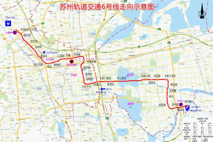 最近,6号线苏州大学站、中塘公园站施工现场一片繁忙。6号线起于苏州新区火车站,止于苏州工业园区新庆路站,全长36.12公里,设站31座,平均站间距1.19公里,是城市东西向穿越古城及金鸡湖的重要干线。