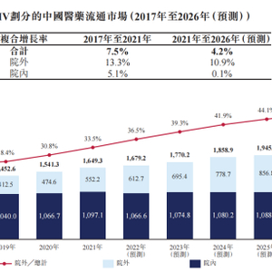 据沙利文统计,按GMV计算,2017年中国院外市场仅占医药流通市场的27.1%,预计2021-2026年,院外市场规模年均复合增速预计为10.9%,至2026年将达到9263亿元,占医药流通市场的比重增至45.7%。