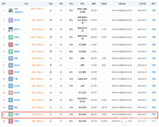 另据天眼查APP显示,刘爱华2022年薪酬为389.02万元,比同为副总经理的李亦争、郭珈均、高屹、徐桂欣、栾依峥分别所获的216.04万元、206.22万元、149.94万元、187.28万元、230.35万元都要多,但仍与副总经理郭学平所获的423.53万元有差距,待遇相当不错。