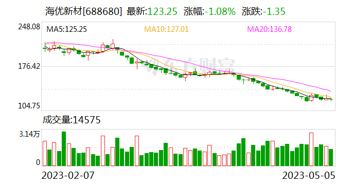 海优新材5月5日发布消息,4月28日,公司接待财通证券等多家机构调研,接待人员董事会秘书 李晓昱,证券代表 姚红霞,通过电话会议进行。