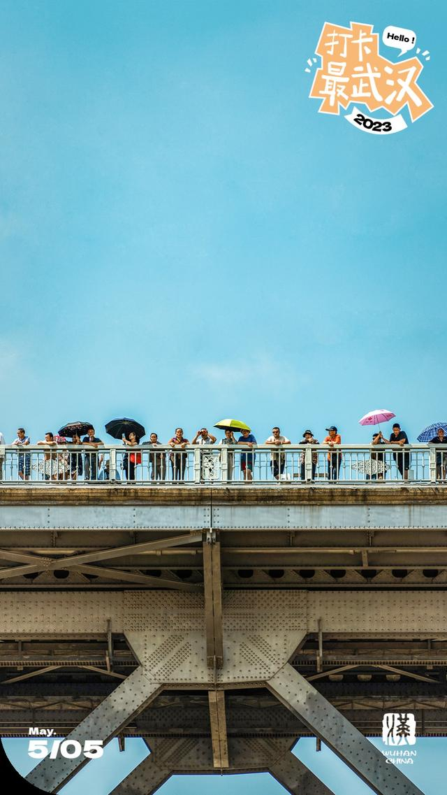 所谓“欲穷千里目,更上一层楼”,站在楼顶眺望,长江和汉江在眼前交汇,城市顺着江流铺展开来,一座座大桥横跨江面,正好认清各种醒目地标。
