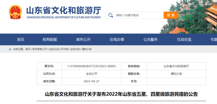 根据《旅游民宿等级划分与评价》《山东省旅游民宿星级评定与管理办法》,77家旅游民宿符合山东省五星级旅游民宿标准,99家旅游民宿符合山东省四星级旅游民宿标准(不含济南、青岛市),具体名单如下: