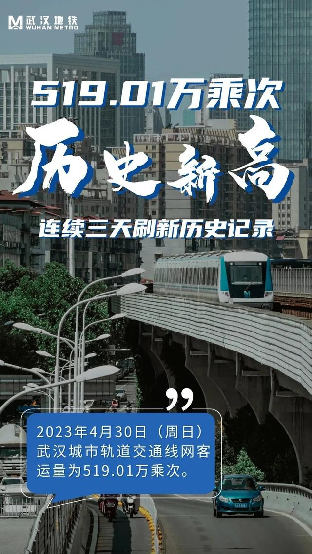 4月28、29、30日连续三天创新高,日均超过500万乘次,最高达到519.01万乘次,成为继北上广深蓉之后,中国内地第六个轨道交通客流突破500万大关的城市。