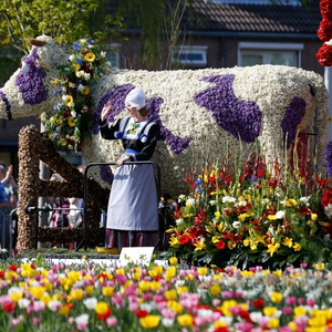 这是2018年4月21日在荷兰郁金香小城利瑟拍摄的花车。(新华社记者叶平凡摄)