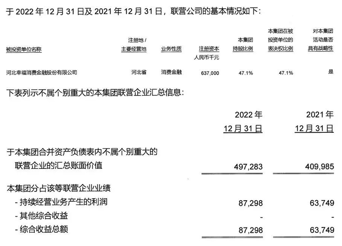 年报显示,2022年,张家口银行分占幸福消费金融持续经营业务产生的利润为8729.8万元,上年同期为6374.9万元。
