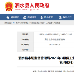 山东省泗水县市场监督管理局公示复合肥料等产品抽检信息