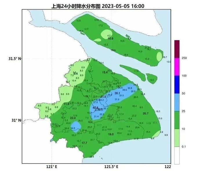 昨夜今晨的这场雨下得够透彻,截至今日16时,徐家汇站24小时累积雨量31毫米,闵行站测得最大雨量为47.6毫米。