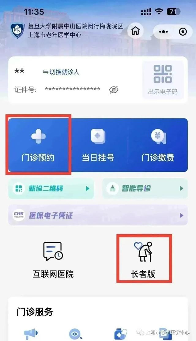 您还可以在小程序首页点击「长者版」(字体更大)进入小程序长者版预约挂号。