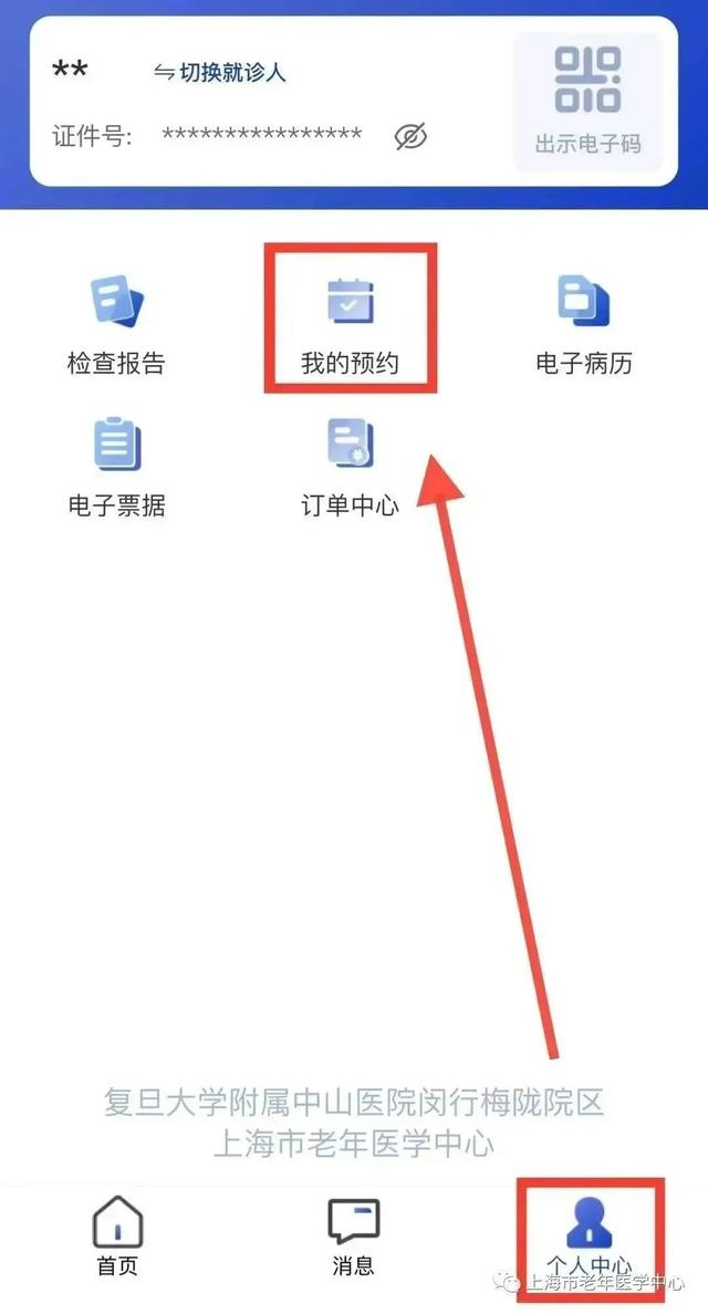 预约成功后,可在下方点击「个人中心」→「我的预约」,进入预约查询界面,查看预约记录及相应状态。