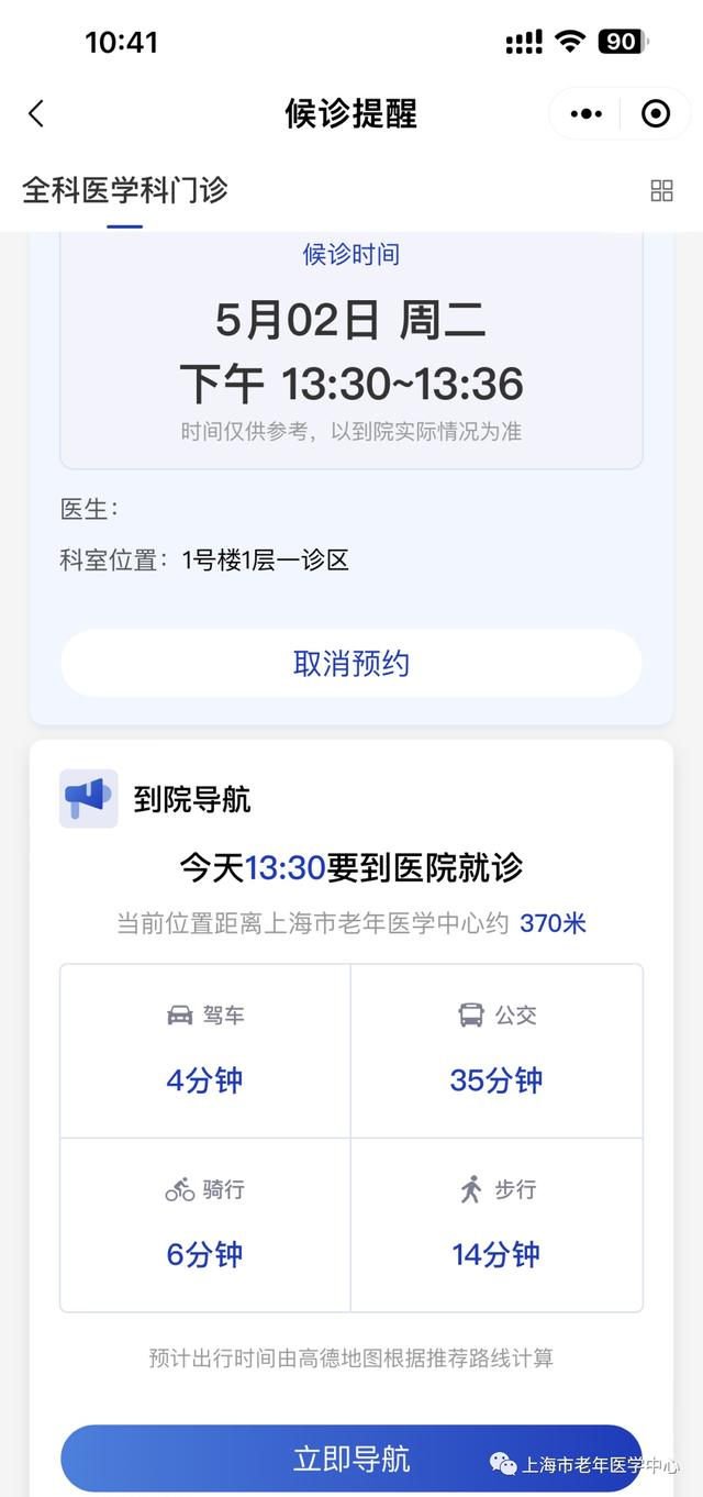 2. 向下滑动后点击「立即导航」可查看来院路线;