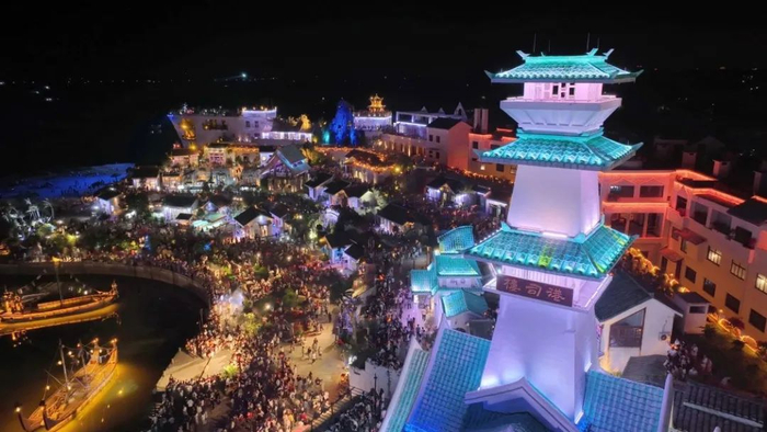 5月1日,夜晚的北海合浦海丝首港景区灯火璀璨,丰富多彩的文旅商融合的夜游活动,让市民和游客乐享“五一”美好假期。通讯员 林启波 摄