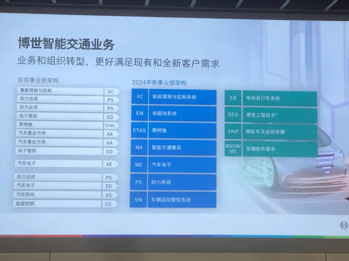 据悉,汽车与智能交通技术业务重组后,将更名为“博世智能交通业务”,继续从属于博世集团,在该业务董事会的领导下独立运营并自负盈亏。