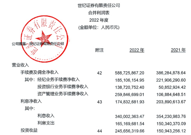 年报显示,2022年世纪证券整体营收为9.64亿元,逆市同比增长约21%;净利润1.52亿元,同比减少约11%。具体而言,手续费及佣金净收入为5.89亿元,其中经纪业务净收入、投行业务净收入及资管业务净收入分别为1.85亿元、1.39亿元及2.6亿元。
