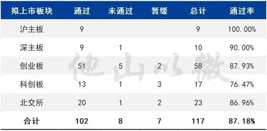 以下是今年1-4月A股各板块IPO审核结果情况: