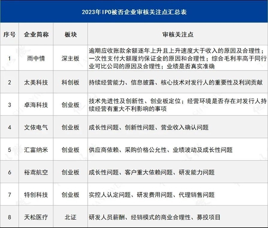 今年1-4月IPO被否企业共8家。具体各板块被否企业都涉及哪些审核关注点?被否原因又是因为什么?